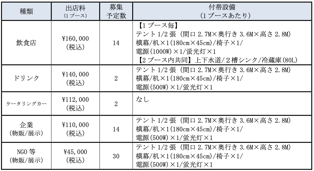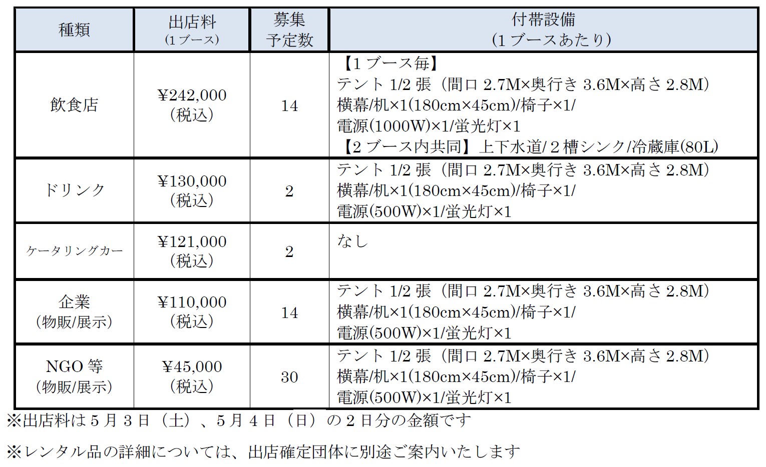 ※出店料は 5 月 3 日(日)、5 月 4 日(月祝)の 2 日分の金額です